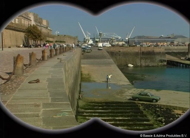 Adriaan asks a man why the water is dropping so quickly. This spot isn't next to the pancake restaurant, but on the other side, next to the spot where they discover the castle at low tide from the assignment later in the episode.