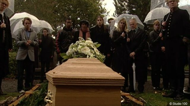 In episode 319 and in episode 320 of season 3 - part 2 of the series, Het Huis Anubis (2006-2009), the funeral of Fabian Ruitenburg took place.